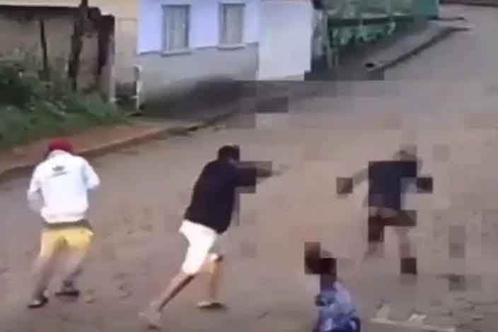 As imagens mostram o momento em que os dois atiradores, o jovem e um outro adolescente, caminhavam na rua e conversavam antes dos tiros. A quarta pessoa fugiu.
