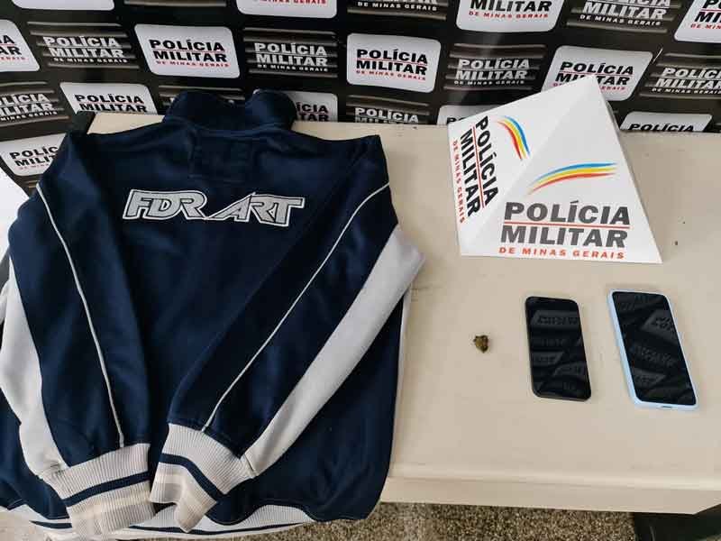 Foram aprendidos 01 blusa de frio, 02 telefones celulares recuperados e 01 pequena porção de maconha.