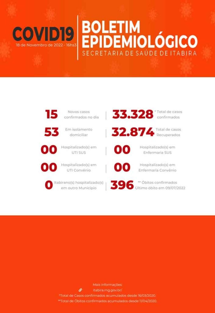 Veja o boletim Covid de hoje, 18/11/2022