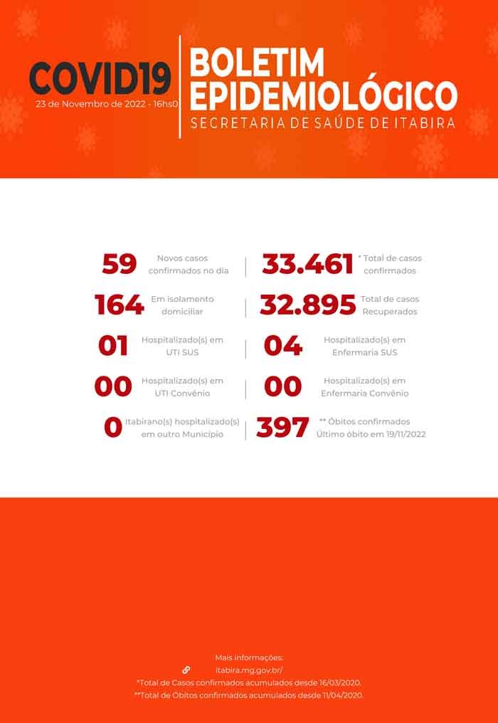 Segue Boletim Covid de hoje 23 de novembro de 2022