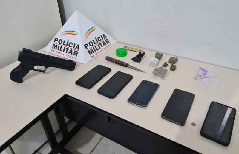 A ação policial resultou na prisão de dois autores de 36 e 27 anos por tráfico de drogas, apreensão de um menor de 13 anos por ameaça à equipe policial, apreensão de drogas e de outros materiais sendo réplica de arma de fogo, 05 aparelhos celulares, 06 tabletes de maconha, 04 pinos de cocaína cheios e diversos pinos vazios, 01 faca, 01 punhal, 01 bastão de madeira.