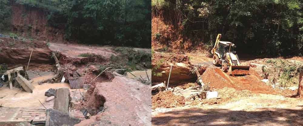 Os acessos às comunidades de Itauninha, Baú, Nascente e Macuco foram as mais afetados, mas a Prefeitura está realizando manutenções em várias vias. O município possui cerca de 700 km de estradas rurais.