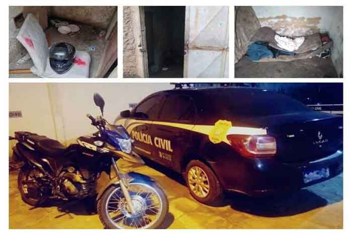 Em seguida, em meio a trabalhos investigativos, a Polícia Civil localizou e estourou o cativeiro. A vítima foi resgatada em uma casa sem móveis, apenas com colchão, em uma rua sem saída. A motocicleta dela também foi recuperada próxima ao local.