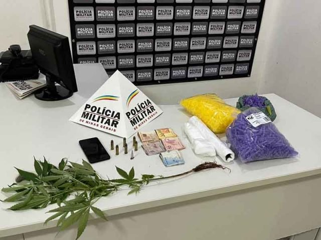 Diante disto, autorizados e na presença de testemunhas, os militares realizaram buscas na residência dos autores e de seu genitor, tendo encontrado na casa dos autores, diversos materiais para a separação, armazenamento e venda de drogas, bem como um pino cheio de substância análoga à cocaína, um pé de maconha e 6 munições calibre .38 intactas.