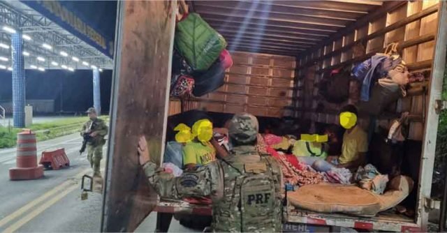 A PRF realizava fiscalização de criminalidade na região quando resolveu abordar o caminhão. Ao verificar o compartimento de carga encontrou os passageiros deitados sobre o piso do baú, acomodados em cobertores e almofadas.
