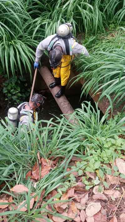 Para identificar o problema, equipes da autarquia percorreram as tubulações que saem dos bairros Pará, Chacrinha e Moinho Velho e chegam ao Parque da Água Santa. De tão delicado e minucioso, para gerar o máximo de segurança e conhecimento dos equipamentos utilizados em espaço confinado, os servidores do Saae precisaram passar por um treinamento junto ao Corpo de Bombeiros.