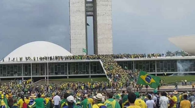 Manifestantes contrários à eleição do presidente Luiz Inácio Lula da Silva (PT) furaram na tarde deste domingo (08/01) barreiras policiais montadas na Esplanada dos Ministérios e conseguiram invadir o Congresso Nacional. Eles subiram a rampa e tomaram a parte onde ficam as cúpulas da Câmara e do Senado. Há a informação de que parte deles conseguiu entrar no prédio do Legislativo.