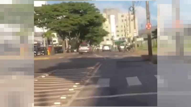 Foi dada ordem de parada tendo o condutor desobedecido a ordem legal evadindo logo em seguida. A viatura policial iniciou o acompanhamento do veículo. O condutor por varias vezes realizou ultrapassagens pela direita, passou por faixas de pedestres em alta velocidade colocando em risco a integridade física de usuários das vias.