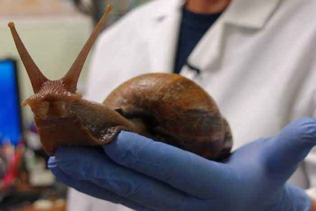 Como o caramujo africano pode ser encontrado em hortas, é muito importante que as hortaliças sejam bem lavadas para retirar e evitar a ingestão do muco liberado pelo molusco. Este material biológico pode estar contaminado pelo parasita Angiostrongylus, causador da meningite eosinofílica. A doença tem evolução benigna, com sintomas que podem durar de dias a meses como distúrbios visuais, dor de cabeça forte e persistente, febre alta, e sensação de formigamento, queimação e pressão na pele, rigidez na nuca.