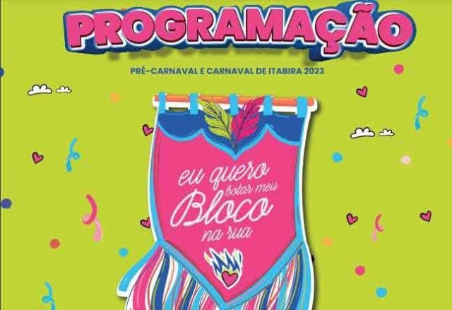 Com o tema “Eu quero é botar meu bloco na rua”, Itabira tem programação gratuita para o pré e para o Carnaval 2023. A festa já começa neste sábado (28) com o desfile das candidatas a rainha do carnaval, a partir das 16h, no paredão da rua Tiradentes. Na oportunidade, serão anunciados o rei e a rainha do Carnaval de Itabira 2023. O evento também contará com o show Sambas de nosso tempo), além do grupo Candonguêro, da cidade de Ouro Preto.