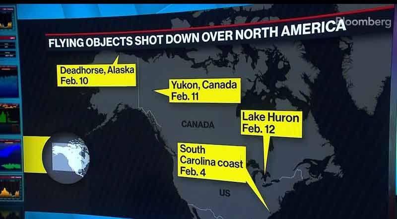 • A operação marcou o terceiro dia consecutivo em que um objeto não identificado foi abatido no espaço aéreo norte-americano. Os incidentes ocorreram poucos dias depois que os EUA derrubaram um suposto balão de vigilância chinês que cruzou o país.