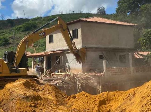 Nesta terça-feira (28/02), as polícias Civil e Militar, juntamente com o Corpo de Bombeiros Militar, realizaram o cumprimento de mandado para reintegração de posse de empresa, no distrito de Serraria, em Periquito, na região do Rio Doce. Na oportunidade, duas casas, que foram construídas irregularmente na propriedade da empresa, foram demolidas. Apesar disso, a casa principal, onde vive a matriarca da família que invadiu as terras, foi preservada por decisão judicial.