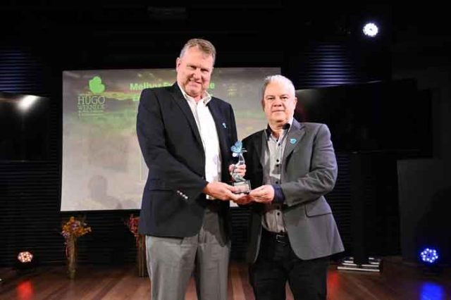 À esquerda, o presidente da Anglo American no Brasil, Wilfred Bruijn, e à direita, o diretor de Assuntos Corporativos e Impacto Sustentável da companhia, Ivan Simões. Crédito: Prêmio Hugo Werneck.