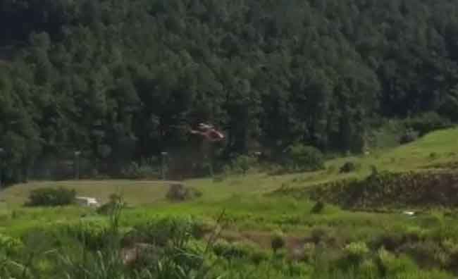 Helicóptero Arcanjo do Corpo de Bombeiros acaba de chegar no local. Segundo informações a grávida esta prestes a ganhar bebê.