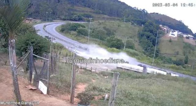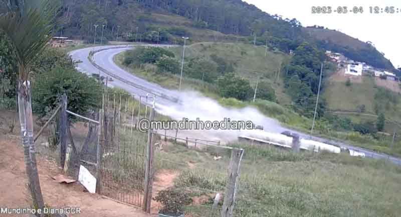 Nesta tarde de sábado (04/03), por volta das 13:30min, de acordo com informações do Corpo de Bombeiros, um caminhão bi-trem transportando aproximadamente 20.000 litros de óleo diesel tombou na via.