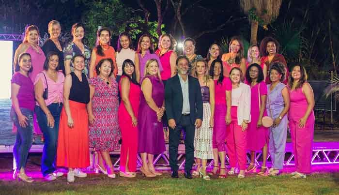 A estilista Raquell Guimarães, esposa do prefeito Marco Antônio Lage, é uma das apoiadoras do PEM. Durante o desfile, ela exaltou a luta das mulheres por respeito e liberdade. “Esta data não é romântica, é política. A história de cada mulher é uma história de luta, de privação e dor. Eu sinto muito, queria falar de flores”, exclamou Raquell.