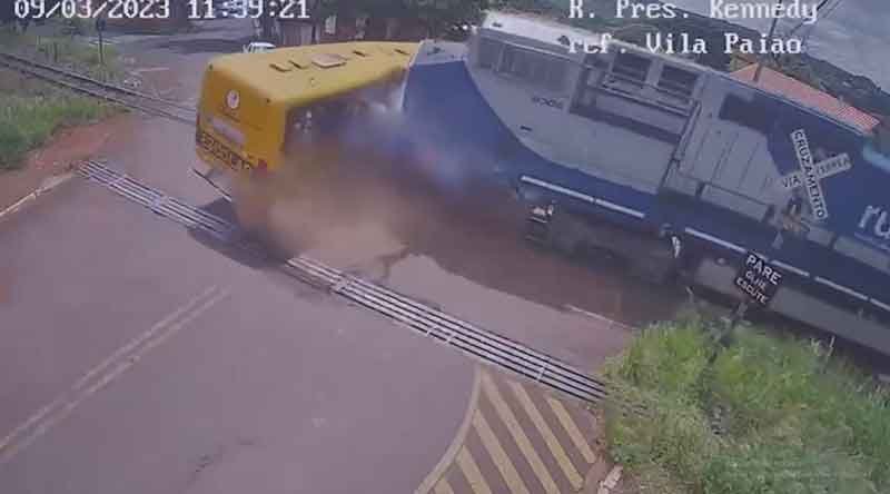 Um vídeo registrou o exato momento em que um trem acerta em cheio a lateral de um ônibus escolar da Apae de Jandaia do Sul, norte do Paraná. Duas meninas morreram na hora. Elas seriam alunas da instituição.