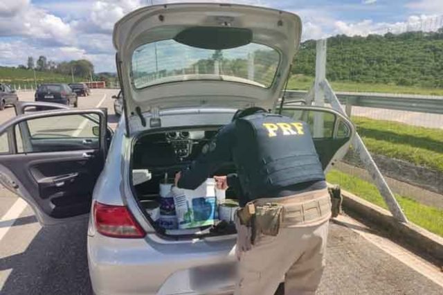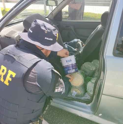 A ação ocorreu após a concessionária, responsável pela rodovia, acionar a PRF para informar sobre o roubo de parte de uma carga de baldes e latas de tinta de um caminhão que havia acidentado.
