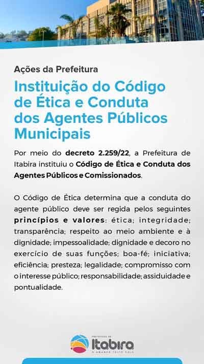 Conheça as iniciativas da Prefeitura de Itabira sobre a ética, conscientização e combate à corrupção.
