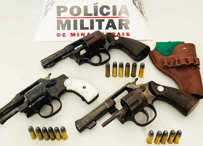Já no Córrego Venda Nova, na casa do autor de 33 anos foi localizado dentro de uma lata de café em grãos 01 revólver calibre 32, com 05 munições e debaixo do colchão de uma cama 01 revólver calibre 38 com 07 munições.