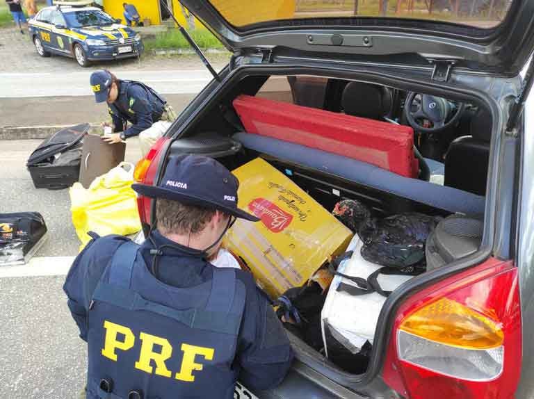 Durante ação de combate ao crime na área da Unidade Operacional da PRF, os policiais abordaram um veículo Fiat/Palio EX que era conduzido por um senhor de 42 anos e tinha como passageiro um outro senhor de 58 anos.