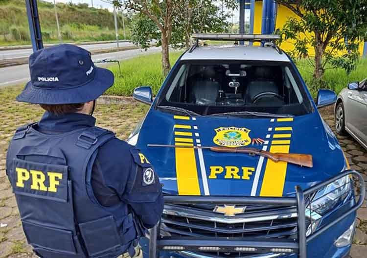 Questionados sobre a arma e artefatos, o condutor informou que os itens são de sua propriedade e que não possui porte de arma. Ademais, a arma não possui registro junto ao órgão competente.