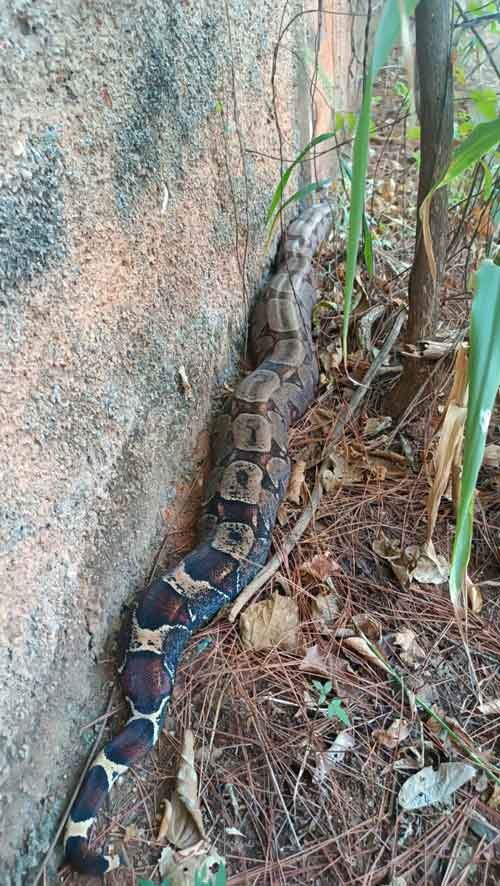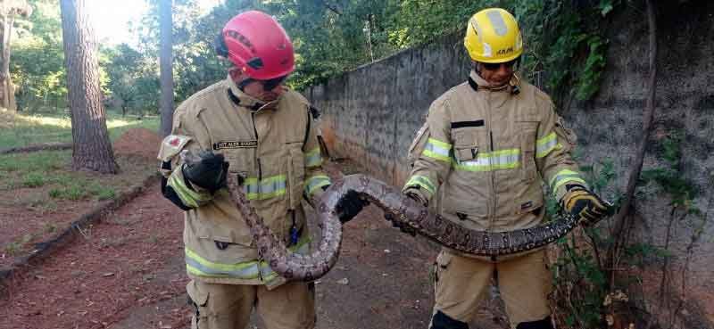 Uma equipe do Corpo de Bombeiros foi acionada na tarde desta segunda-feira, 17 de Abril, para atender uma ocorrência envolvendo a captura de uma serpente na Vila Atlântida, região Norte de Montes Claros. Segundo informações, a guarnição se deparou com uma cobra da espécie “Jibóia” de aproximadamente 2,20 metros de comprimento dentro do quintal de uma residência, oferecendo risco à integridade física dos moradores.