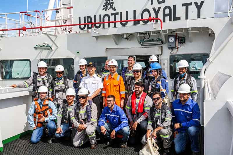 Com destino final à China, o navio bicombustível Ubuntu Loyalty recebeu o carregamento de 175 mil toneladas de minério de ferro do Minas-Rio. A operação no porto foi conduzida pela Ferroport, joint-venture formada entre a Anglo American e a Prumo Logística.