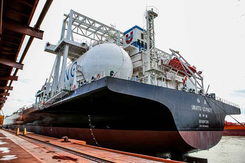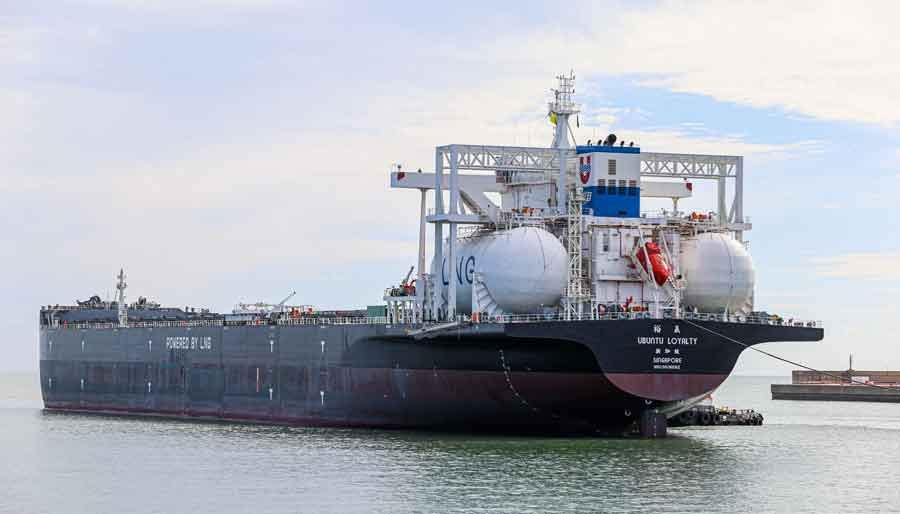 O navio MV Ubuntu Loyalty da Anglo American, que utiliza Gás Natural Liquefeito (GNL) como combustível, realizou sua viagem inaugural atracando em território brasileiro, nesta segunda-feira (01/05). A embarcação foi recebida no terminal portuário de minério de ferro administrado pela Ferroport, no Porto do Açu, em São João da Barra (RJ). Essa foi a primeira vez que um navio com esse tipo de tecnologia sustentável aporta no Brasil.