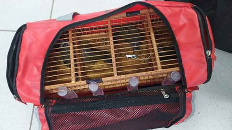 Diante do fato, o proprietário das mochilas foi preso e encaminhado, juntamente, com os pássaros, para a Polícia Judiciária.