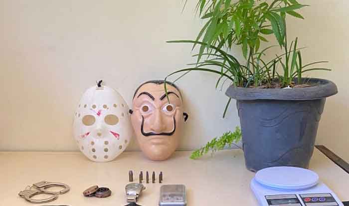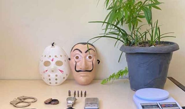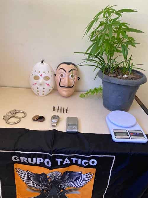 Durante as buscas a equipe de militares, 1° Sargento Gandra e Loiola, o soldado Monteiro e Hugo, localizaram oito (8) munições intactas calibre 22, uma munição intacta calibre 40, outra balança de precisão e duas máscaras. Os Militares constaram em ocorrência que o autor em questão teria diversas passagens por outros crimes. Assim sendo dado voz de prisão em flagrante delito e o conduziram para a delegacia de polícia civil, sob a acusação de tráfico ilícito de drogas e posse irregular de munições.