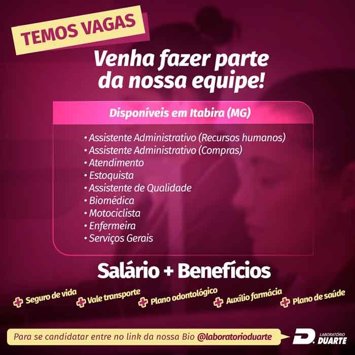 Se você está em busca de uma oportunidade de emprego no município de Itabira, temos uma excelente notícia para você! O Laboratório Duarte está com vagas disponíveis e em busca de profissionais qualificados para integrarem a nossa equipe.