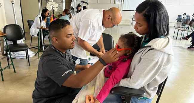 Os alunos fazem exames complementares para seis tipos de doença: miopia, hipermetropia, astigmatismo, anisometropia, estrabismo e anisocoria. Agora, com o atendimento oftalmológico, é possível conferir o grau adequado e experimentar os óculos.