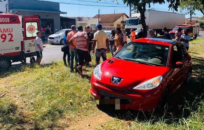 O acidente ocorreu devido a uma colisão traseira, resultando em um dos veículos parando sobre o canteiro central da avenida.
