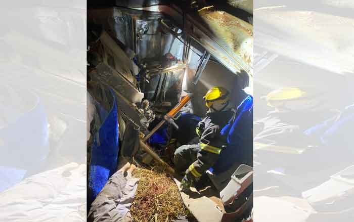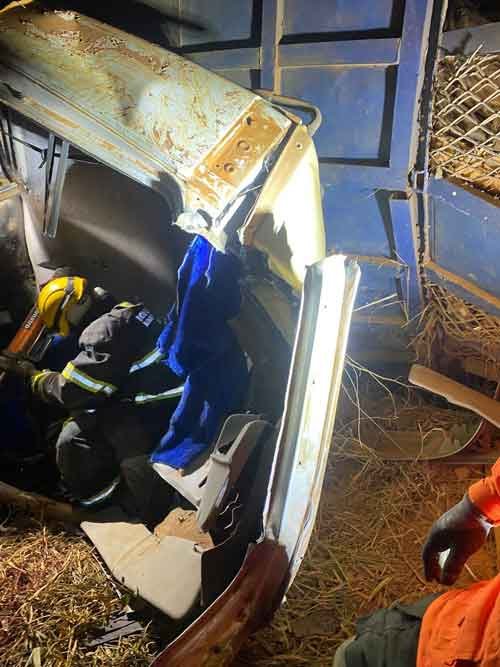 A cabine do veículo acabou ficando totalmente escorada no barranco, deixando o motorista, de 29 anos, preso às ferragens. Infelizmente, a vítima veio a óbito no local do acidente.