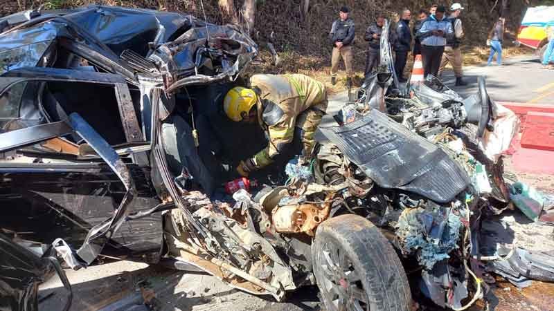 Eles sofreram diversas fraturas e trauma de crânio, apresentando também exposição de massa encefálica e tiveram o óbito constatado por uma médica do SAMU”. Ainda segundo os Bombeiros, as Polícias Militar e Rodoviária compareceram ao local e ficaram responsáveis pela coordenação do trânsito, que ficou interrompido nos dois sentidos durante todo o trabalho.