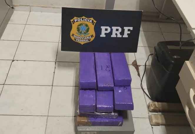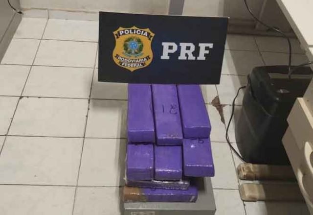 Ao vistoriarem as bagagens, no compartimento de carga do veículo, os agentes localizaram uma bolsa contendo 15 tabletes de maconha, perfazendo um peso aproximado de 11 kg, e 1 tablete de cocaína, com peso aproximado de 1 kg.