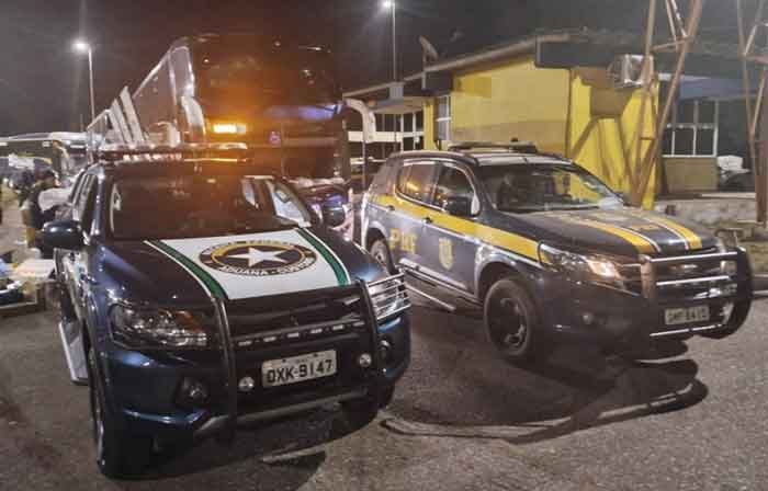 A apreensão ocorreu durante a abordagem de um ônibus que seguia de São Paulo (SP) para Montes Claros (MG).