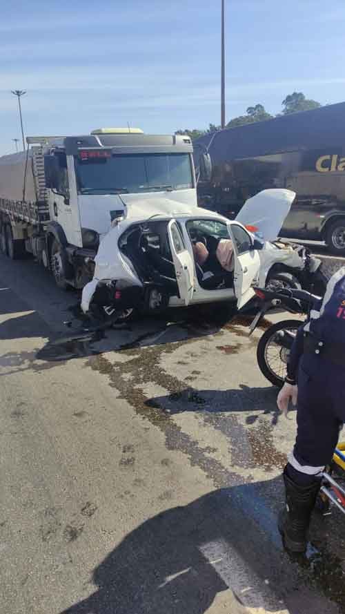 De acordo com as últimas informações, o acidente envolveu seis veículos, sendo dois caminhões e quatro carros de passeio. Três pessoas ficaram feridas no ocorrido: uma vítima com traumatismo cranioencefálico (TCE), outra com escoriações e uma terceira com dores na região lombar.