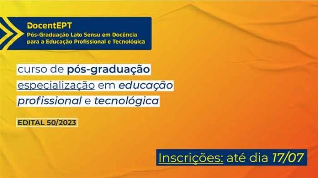 O curso, oferecido na modalidade a distância, tem duração de um ano e visa capacitar profissionais que atuam ou desejam atuar nas ofertas da Educação Profissional e Tecnológica (EPT), especialmente para os cursos técnicos de nível médio, além de estimular a produção e difusão de conhecimentos sobre a EPT como campo de estudo.