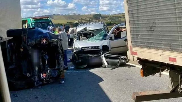 Um engavetamento envolvendo 8 veículos resultou em uma pessoa em estado grave e outra com ferimentos leves na Rodovia Fernão Dias, em Cambuí (MG). O acidente ocorreu por volta de 12h30, na altura do km 889, no sentido São Paulo (SP), causando uma grande fila de veículos e congestionamento na BR-381.