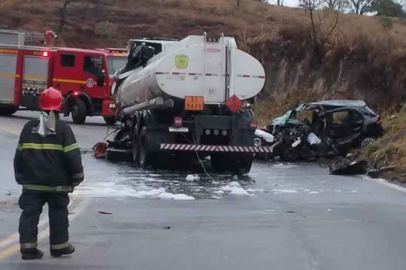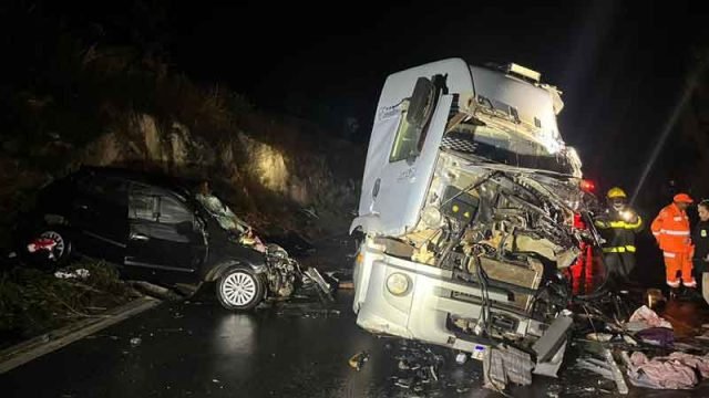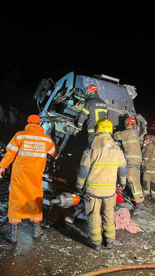 Na noite de ontem (26/07), por volta das 23h30, uma terrível colisão entre dois caminhões e um veículo de passeio mobilizou os bombeiros na Rodovia BR-381, próximo ao município de São Gonçalo do Rio Abaixo.