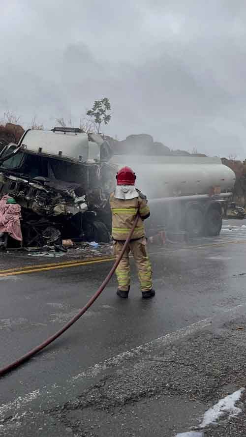De acordo com informações do Corpo de Bombeiros, seis vítimas ficaram envolvidas na tragédia. Em um dos caminhões, uma pessoa já se encontrava fora do veículo no momento da chegada dos bombeiros e recusou atendimento médico. Por outro lado, no segundo caminhão, que se tratava de um caminhão-tanque, o condutor estava preso às ferragens e, infelizmente, veio a óbito. A equipe do Serviço de Atendimento Móvel de Urgência (SAMU) confirmou o falecimento.