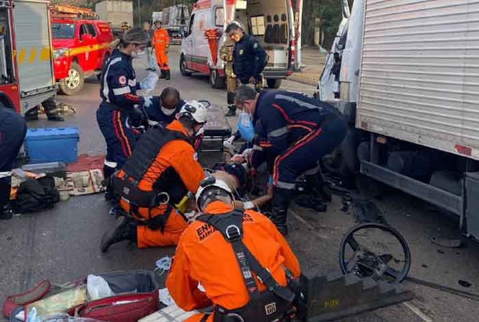 O motorista do caminhão baú, de 60 anos, ficou preso às ferragens, e os bombeiros precisaram utilizar ferramentas hidráulicas para resgatá-lo. Durante o atendimento, o homem perdeu a consciência e, por isso, foi necessário realizar a intubação, o que foi realizado pela equipe do SAMU. Além de escoriações, ele acabou tendo parte da perna amputada.