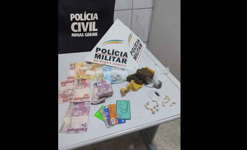 A suspeita, uma mulher de 56 anos, foi detida em flagrante por tráfico ilícito de drogas. A busca na residência resultou na descoberta de mais drogas, bem como dinheiro de origem suspeita. Entre os itens apreendidos estão cerca de R$ 791,20 em dinheiro, diversos cartões, 1 Cartão CEF (Caixa Econômica Federal), 18 pedras de substância análoga a crack, 03 porções prensadas e 01 porção esfarelada de substância análoga a maconha, totalizando aproximadamente 300g.