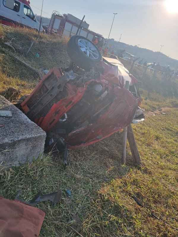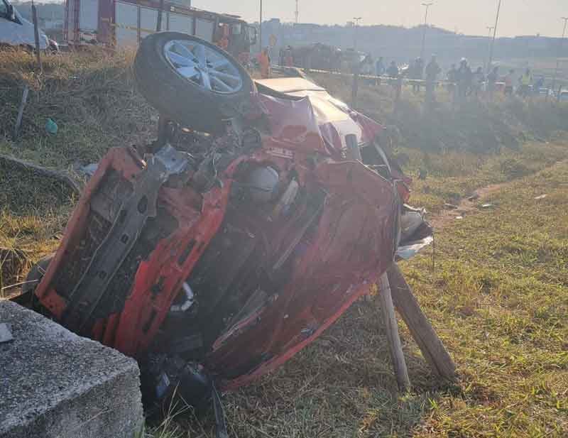 O veículo de passeio envolvido no acidente capotou, carregando três ocupantes. Infelizmente, um adulto do sexo masculino ainda não identificado perdeu a vida. O médico do SAMU que compareceu ao local confirmou o óbito.