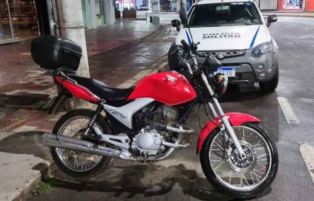 Durante a madrugada desta quinta-feira (17/08) por volta das 01h19min, enquanto militares realizavam um patrulhamento na área central da cidade, mais precisamente na Avenida João Pinheiro, um motocicleta chamou a atenção dos militares. A motocicleta Honda CG 150, vermelha, que havia sido alvo de furto, encontrava-se estacionada em frente a uma loja, sem a chave de ignição.