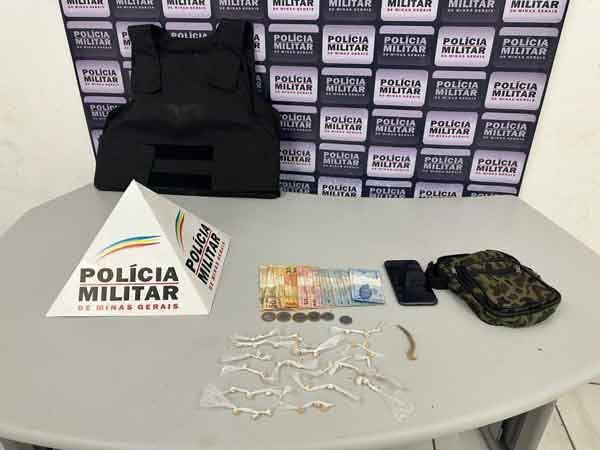 Após buscas minuciosas, foram encontrados com um dos autores, de 16 anos, uma pochete camuflada contendo 50 pedras de crack, 01 bolsa, 01 cigarro de maconha e R$252,00 em dinheiro. Além disso, durante buscas autorizadas em outra residência, os policiais encontraram um colete balístico que havia sido roubado de uma empresa no dia 04 de fevereiro de 2023.