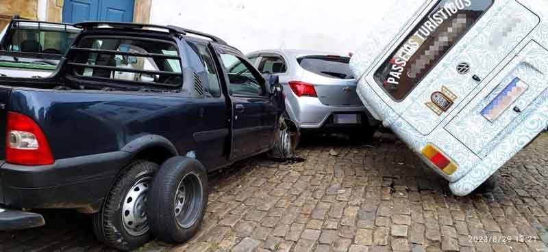 Uma colisão entre uma Kombi e uma Fiat Strada causou momentos de tensão no coração da cidade. O acidente ocorreu na Rua Conde Bobabela, em frente ao Museu Casa dos Contos, por volta do meio-dia.