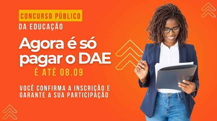 Os candidatos que se inscreveram no concurso público da Secretaria de Estado de Educação (SEE/MG), referente ao Edital SEPLAG/SEE nº 3/2023, têm até o dia 8 de setembro, próxima sexta-feira, para realizar o pagamento do Documento de Arrecadação Estadual (DAE) — boleto bancário emitido após a realização da inscrição.